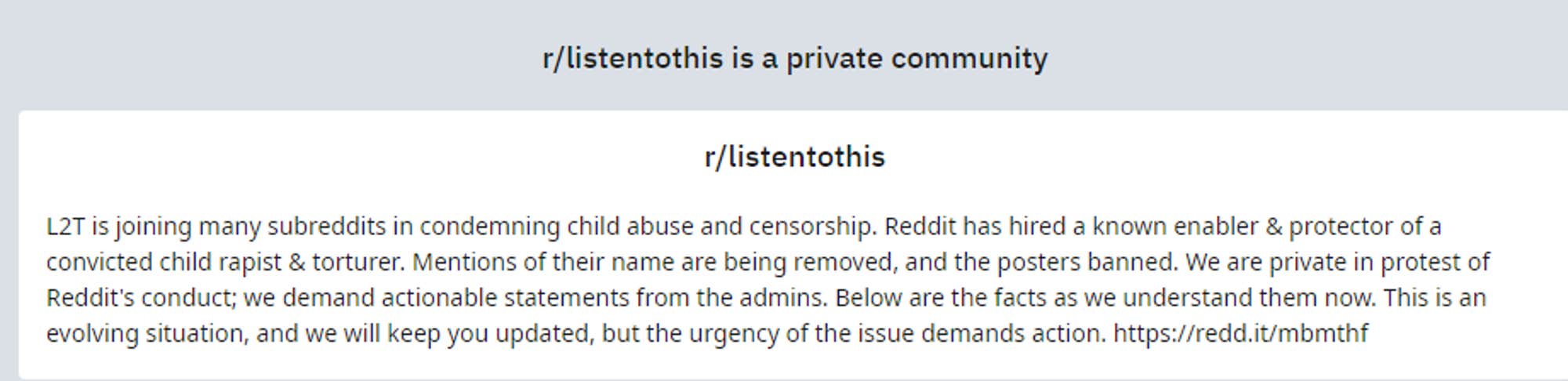 The post Massive subs all go private to protest Reddit’s hiring of a pedophile ‘enabler’ appeared first on The Daily Dot.
