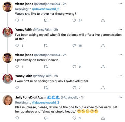 While online users joked about wanting to be the one to put their knee on her neck, people on Twitter were mainly frustrated at her dismissal of the police officer’s role in Floyd’s death.