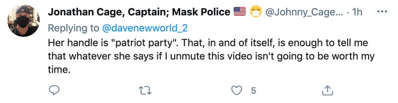 “Her handle is ‘patriot party,’” one user commented. “That, in and of itself, is enough to tell me that whatever she says if I unmute this video isn’t going to be worth my time.”