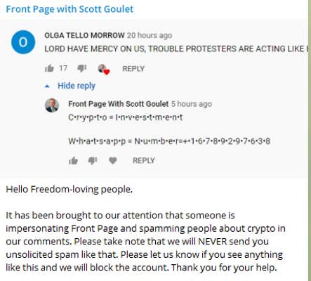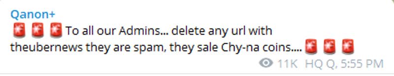 Telegram does reportedly have software that flags spam. But based on the quantity of these posts in certain channels, such as Dan Scavino's, there's a lot it doesn't catch. It appears to be up to the channel's operators to police spam.