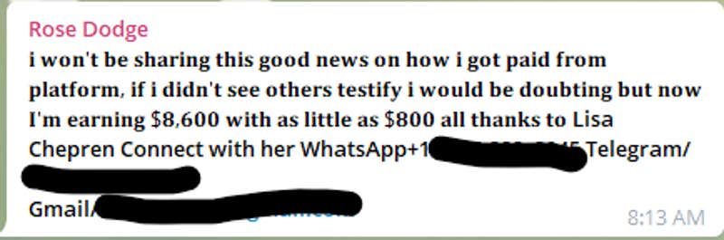 Numerous Telegram channels are littered with posts about working from home, buying bitcoin, and other potential scams.