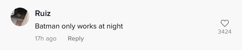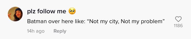 New York just isn't Gotham, the fictional city that Batman frequently saves with various gadgets—which means what happens there is apparently not Batman's concern, according to TikTok user @piffit.