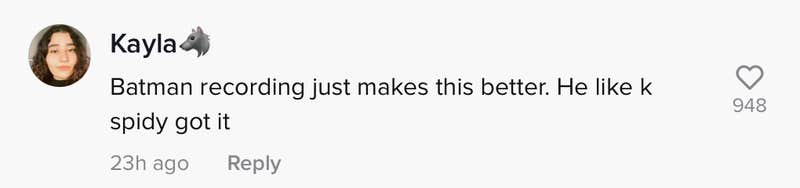 Commenters went wild for the video on TikTok, where Batman's inaction and the presence of a topless woman drew many jokes.
