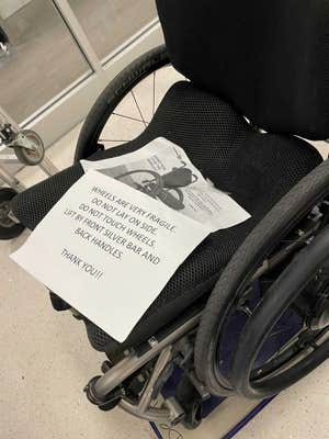 She said she always leaves a note on how to handle her chair, however, it was of no help on this occasion.