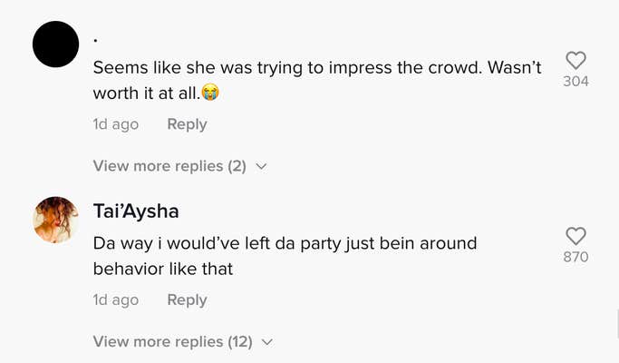 “[The] way I would’ve left [the] party just being around behavior like that,” another said.