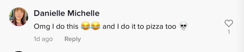 "Omg I do this and I do it to pizza too," @daniellemichelle88 wrote.