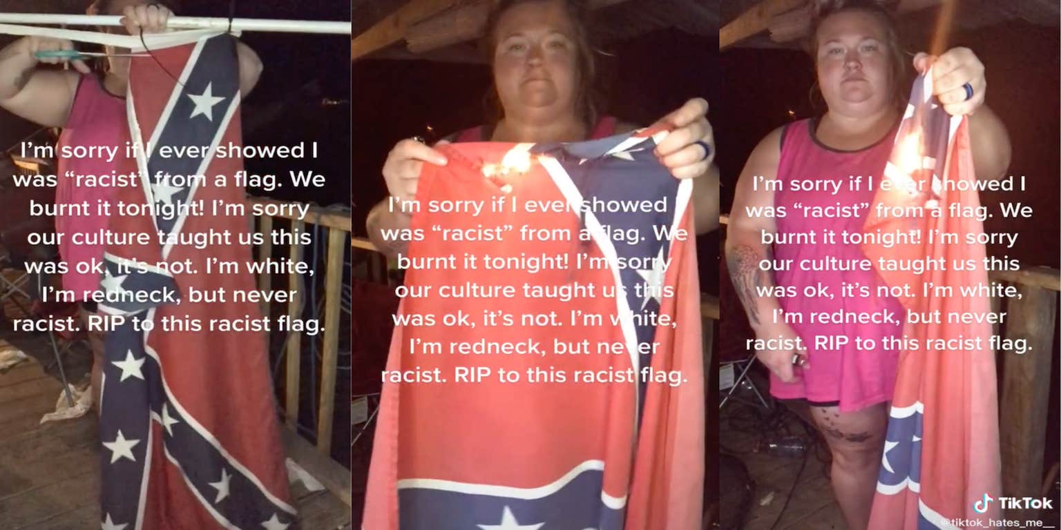 - Woman realizes Confederate flag is racist—and burns it on TikTok