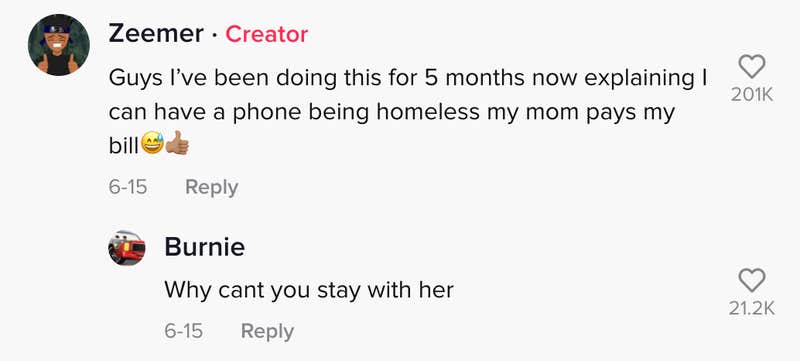 Zeemer said in a video that he and his mom were able to stay at his grandmother's house for a period of time before getting kicked out, which sparked further controversy surrounding whether he was actually unhoused.
