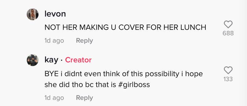 One viewer suggested the worker needed someone to watch the store because she was on her lunch break. "BYE I didn't even think of this possibility I hope she did tho (because) that is #girlboss," @kayli.cernan wrote in response.
