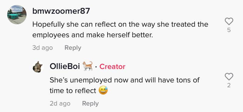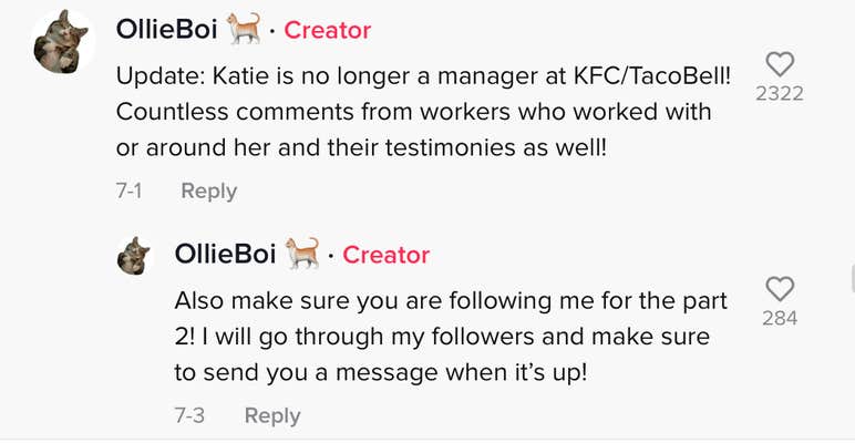 An update provided by the TikToker claimed that the manager has since been fired.