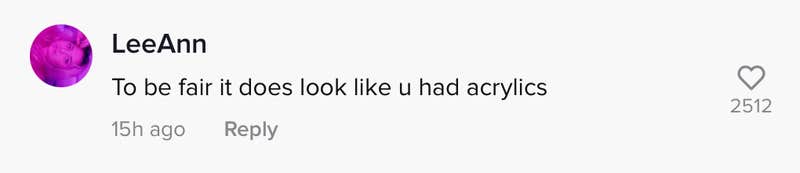 "To be fair, it does look like you had acrylics," @leeanngreen wrote.