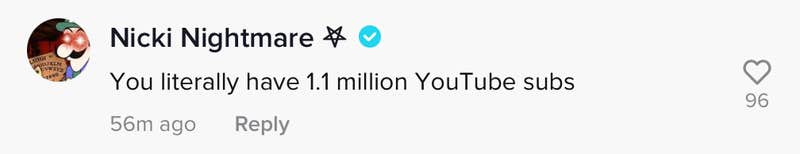 "You literally have 1.1 million YouTube subs," wrote Nicki Nightmare, another musician.