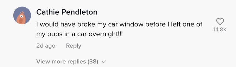 “I would have broke my car window before I left one of my pups in the car overnight!!!” one person said.
