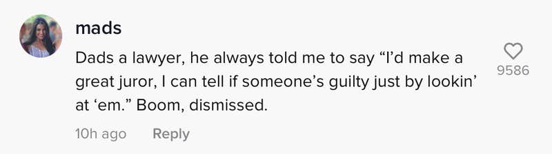 Others shared their own tricks to getting out of jury duty, ranging from expressing a lack of faith in the judicial system to straight up crying.