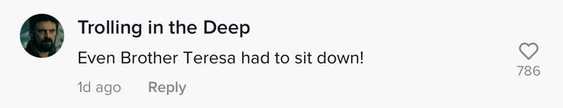 "Even Brother Teresa had to sit down!" one commenter wrote.