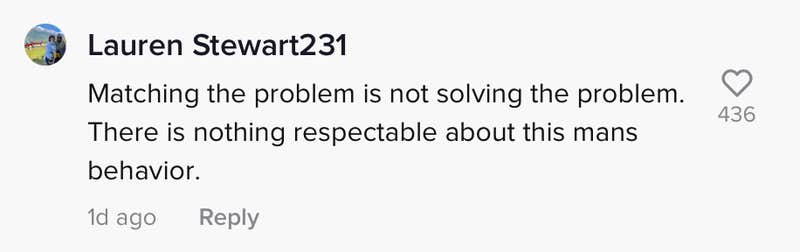 "Matching the problem is not solving the problem," another commenter wrote. "There is nothing respectable about this man's behavior."
