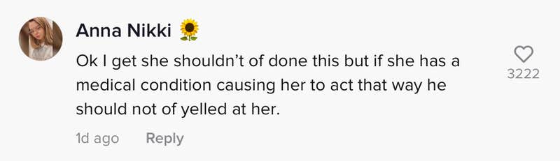 Among those supportive comments, some suggested that the woman was in crisis and the situation could have been handled differently.