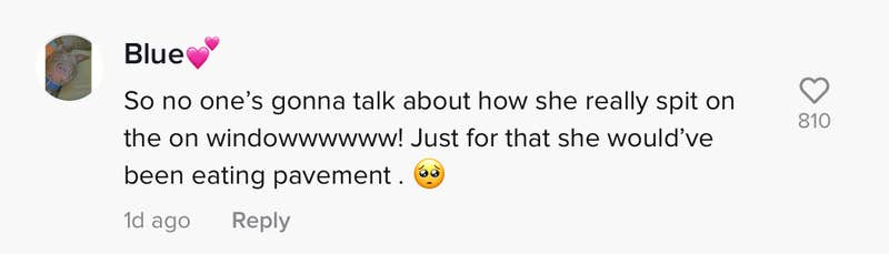 @letsgosomeplacefun_'s shoes."So no one's gonna talk about how she really spit on the window!" one commenter wrote. "Just for that she would've been eating pavement."