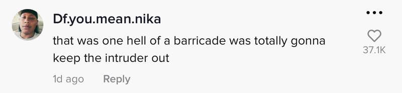 "That was one hell of a barricade was totally gonna keep the intruder out," one commenter wrote.