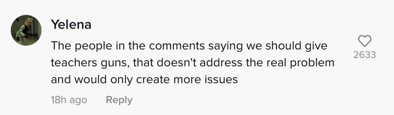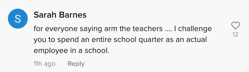 "For everyone saying arm the teachers... I challenge you to spend an entire school quarter as an actual employee in a school," another commenter wrote.