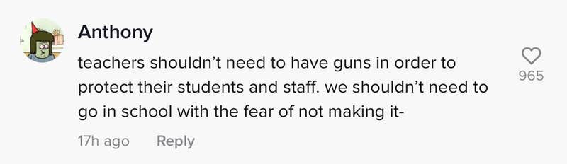 However, there were more commenters pushing back against the idea that teachers should have to be armed to go to work in a school.