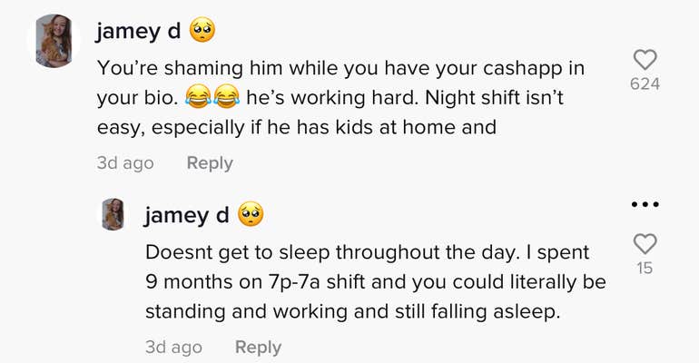 "As a night shift worker, you don't understand the struggle to stay awake, also (you) don't know if he is going thru personal stuff," one commenter wrote. "(You probably) got him fired."