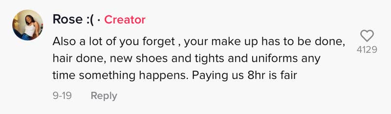 "$8 is too low," a viewer wrote. "They're using you as part of the marketing. You should be making $25 an hour minimum."