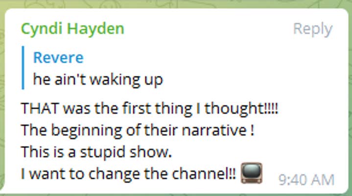 QAnon promoter Tracy "Beanz" Diaz posted about Biden's colonoscopy on her podcast's Telegram channel. Diaz wrote, "I thought it was a 'routine physical.' Now it's a colonoscopy and he has to be asleep?" To her credit, she subsequently posted that she'd learned that colonoscopies are indeed part of routine physicals.