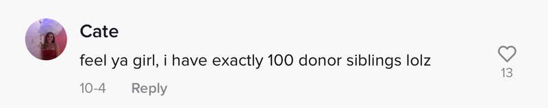 Some commenters on the video shared that they are also children of sperm donors and similarly discovered multiple siblings through DNA tests. One commenter said that they are one of 100. Others have siblings or large numbers of family member who originated in a more typical fashion.