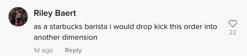 Other baristas who commented on the video described this beverage as their "nightmare." "As a Starbucks Barista I would drop kick this order into another dimension," one wrote.