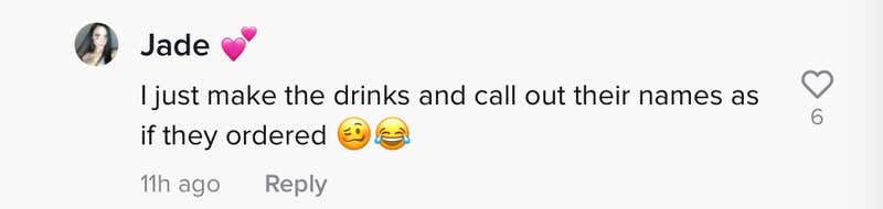 "I just made the drinks and call out their names as if they ordered," another user commented.