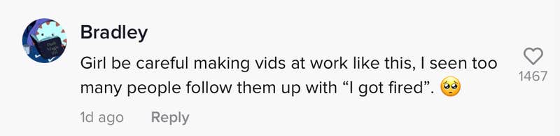 Some warned the worker against making such content—even if made as a joke—because they allegedly have seen other Starbucks workers on TikTok lose their jobs. "Girl be careful making vids at work like this, (I've) seen too many people follow them up with 'I got fired,'" one user commented.