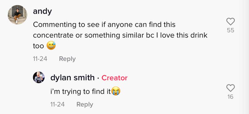 The video shows the company that supplies the concentrate, the Republic of Tea, causing some commenters to request a way to order it that doesn't necessitate a phone call. "Commenting to see if anyone can find this concentrate or something similar (because) I love this drink too," one commenter wrote.