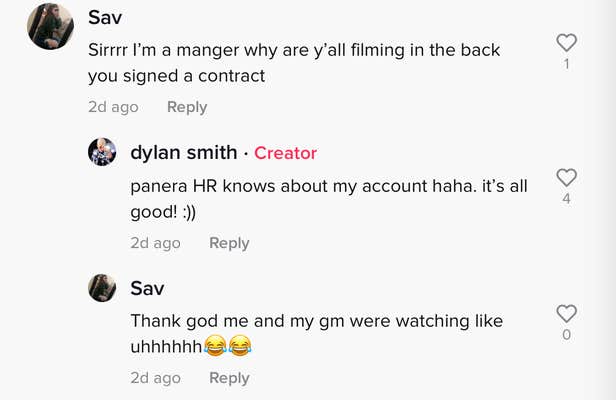 Smith also revealed in the comments section of another one of his videos that Panera's human resources department "knows about my account" and that "it's all good."