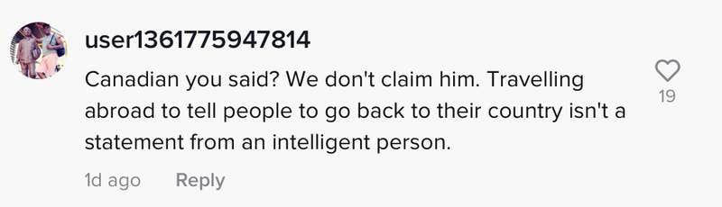 "Traveling abroad to tell people to go bak to their country isn't a statement from an intelligent person," they wrote.