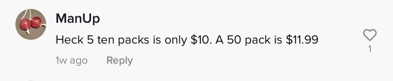 Others pointed out that it was also cheaper to buy five 10 packs, getting the 50-pack for a cool $10 instead of $11.99.