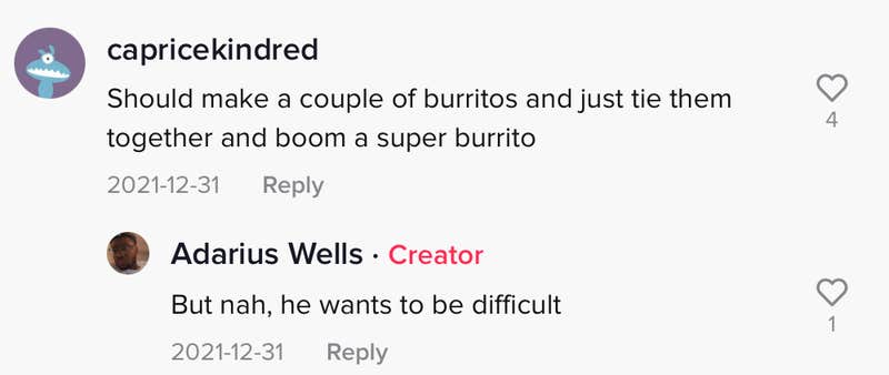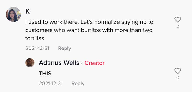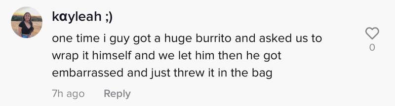 Commenters openly chided the decision to try to order a burrito like this, pointing out that it puts additional strain on service workers who are not trained to make it as they are for items that are on the menu.