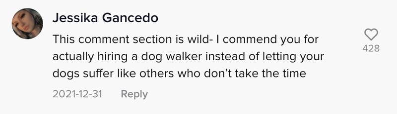 "This comment section is wild," one commenter wrote. "I commend you for actually hiring a dog walker instead of letting your dogs suffer like others who don't take the time."